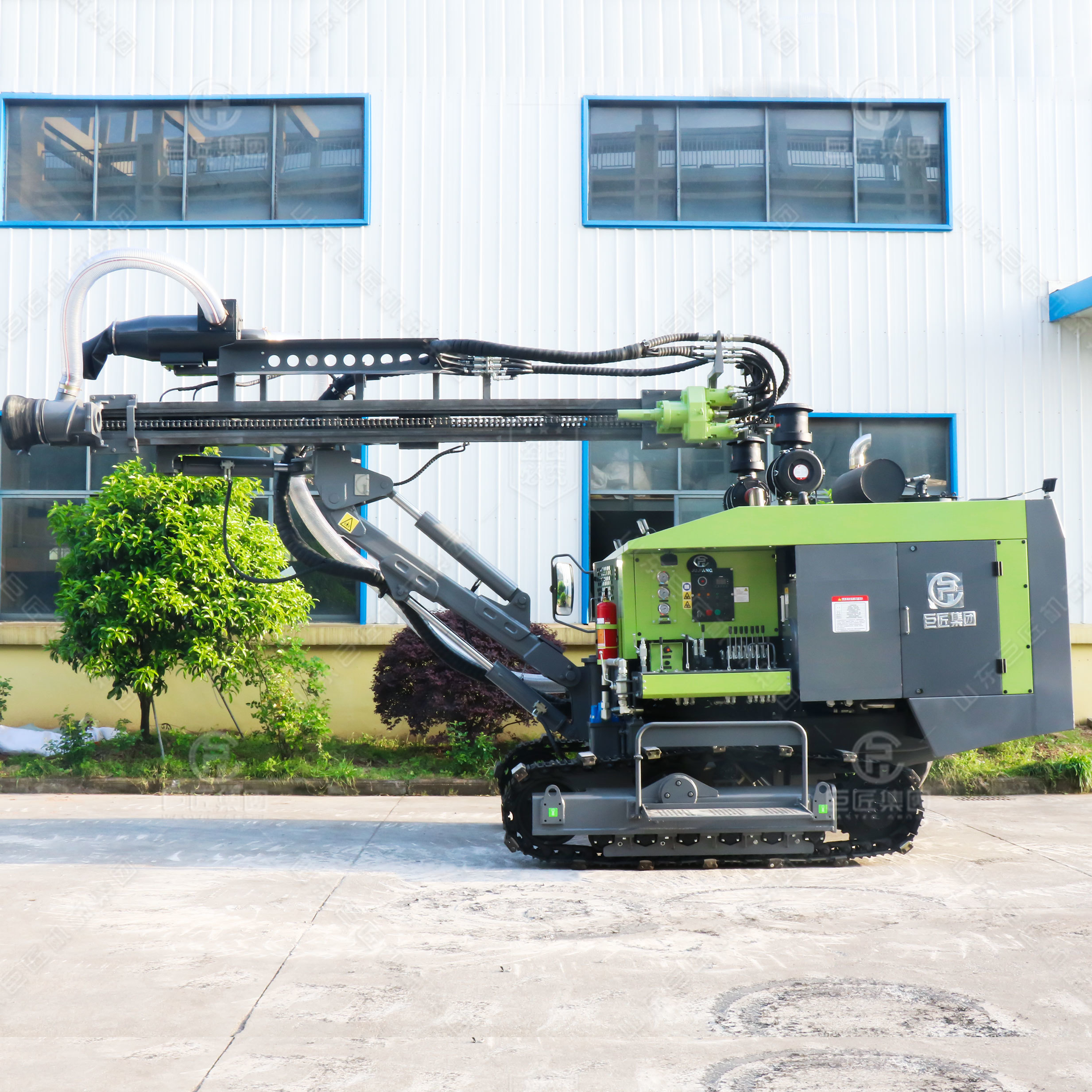 KQZD系列潜孔钻车是一种高效、灵活的露天履带式凿岩钻孔设备,它通过冲击器将冲击能量传递至钻头,钻头在高频冲击岩石的同时高速旋转,压缩空气将钻取的岩屑排出孔外,实现“冲击-旋转-排渣”同步作业。潜孔钻车具有卓越的移动性和越野能力,适应全地形作业,可在复杂地形快速灵活转场,主要应用于露天矿山爆破孔、大型石方工程、水利水电建设等领域,德信竞技潜孔钻车是硬岩深孔作业的高效可靠选择。